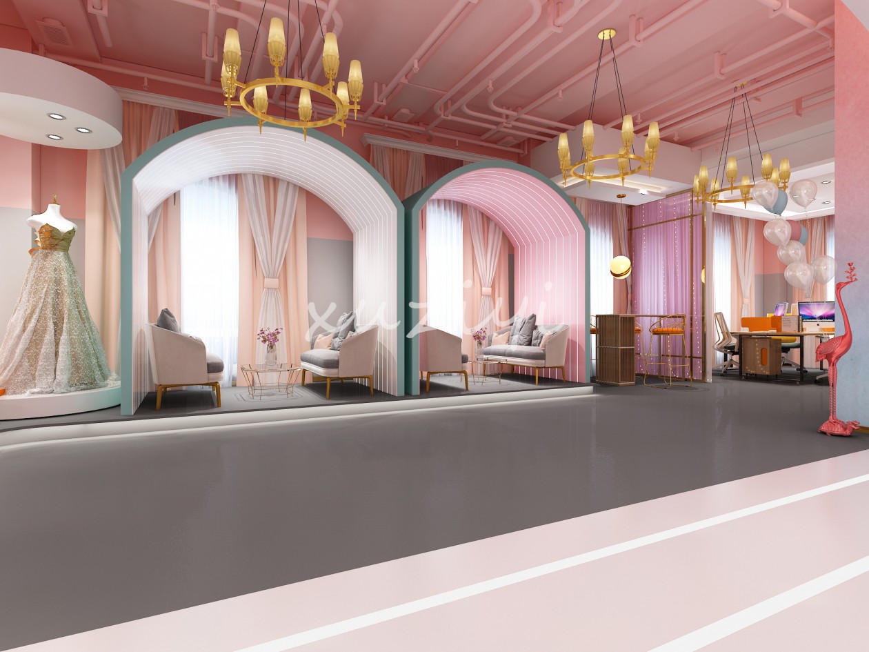 好的婚沙影樓裝修公司用張揚(yáng)的折線造型處理將原有平淡的立面切割,形成高調(diào)及無(wú)限視覺(jué)沖擊力的塊面;石家莊婚沙影樓裝修立體花線和 一些軟裝配飾中和空間的硬質(zhì),剛?cè)岵?jì),充分體現(xiàn)行業(yè)的屬性及特色。個(gè)性、浪漫、親和,無(wú)限想象空間,無(wú)限舒適體驗(yàn),迎合85、90后消費(fèi)者的審美需求。專(zhuān)業(yè)婚沙影樓裝修風(fēng)格定位以法式為設(shè)計(jì)主調(diào),搭配玫瑰金色及黑色細(xì)節(jié),更為突出空間的高貴和時(shí)尚,元素整合的立體花線為造型基礎(chǔ),球體為輔助元素,讓整個(gè)空間休閑、時(shí)尚、個(gè)性,為企業(yè)健康發(fā)展提供一定的基礎(chǔ)。